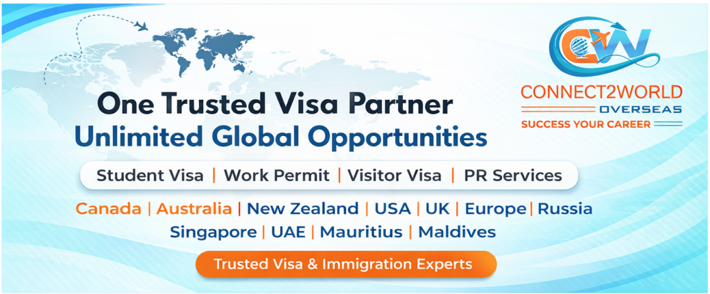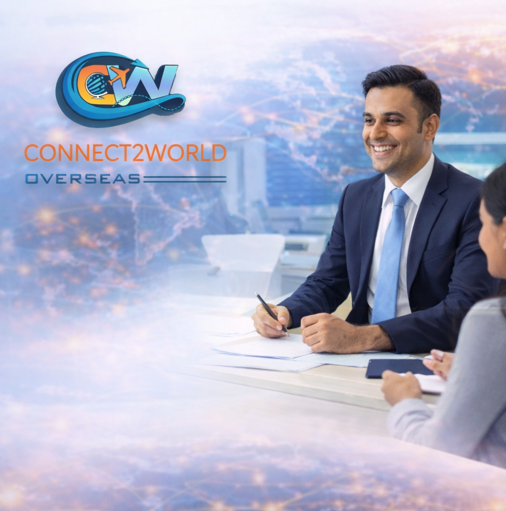 Connect2world is a leading overseas career consultant with 50+ offices across India and abroad, serving over 1 million clients worldwide.We provide expert guidance for migration, study, and work visas, offering personalized counseling every month to thousands of aspiring individuals.
